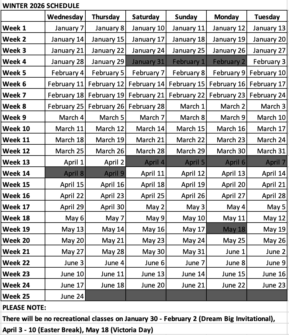 Please note: athletes must meet the minimum age requirement of the class prior to the session start date